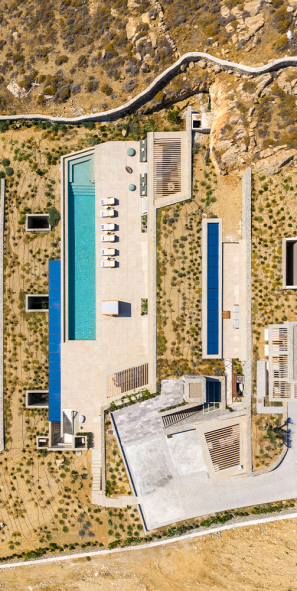 Η εξοχική κατοικία, συνολικού εμβαδού 400m2, επιχειρεί να εναρμονιστεί με τα στοιχεία του μυκονιάτικου τοπίου και να εκμεταλλευτεί κατά το δοκούν τη θέα που απλώνεται γύρω της ...